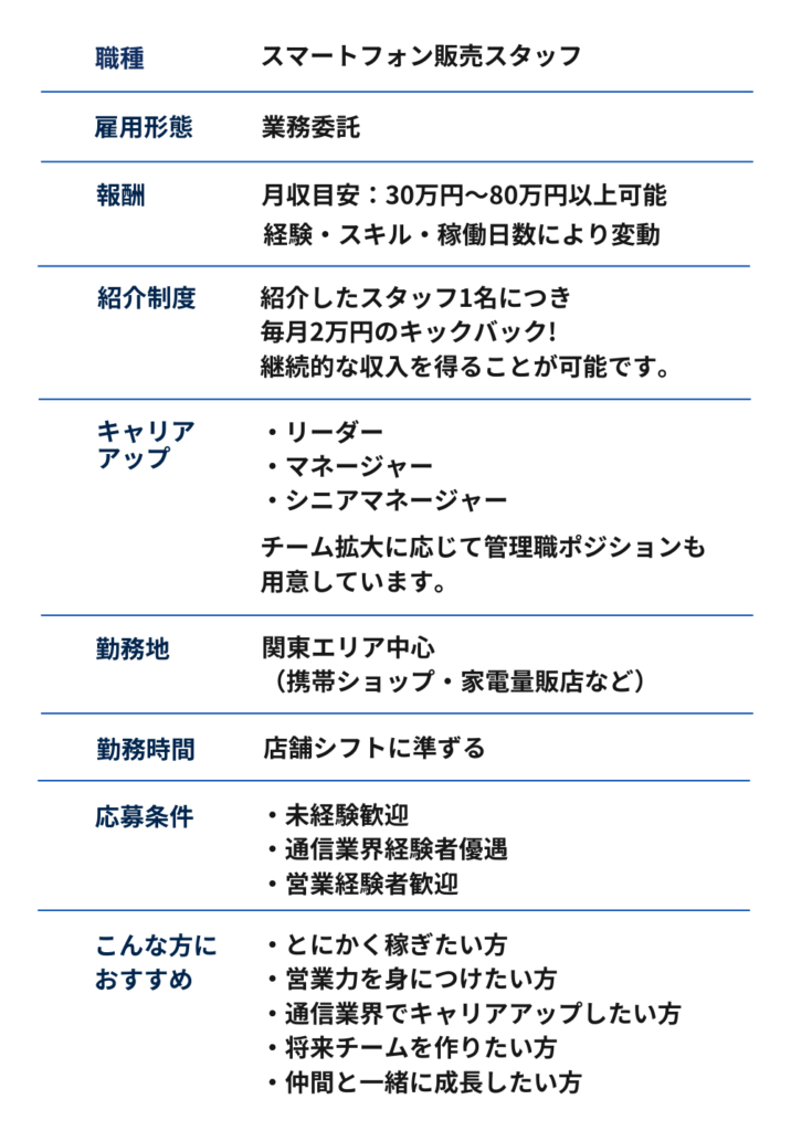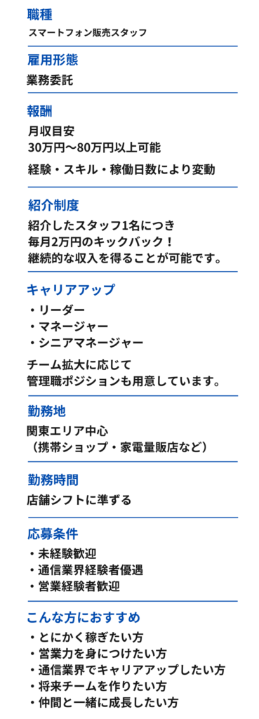 - スマートフォン販売スタッフ(業務委託)
