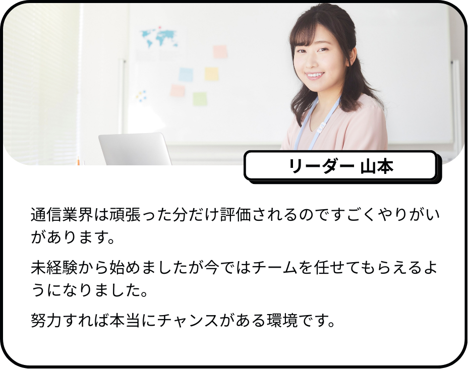 通信業界は、努力次第で年齢や学歴に関係なく収入を伸ばせる世界です。